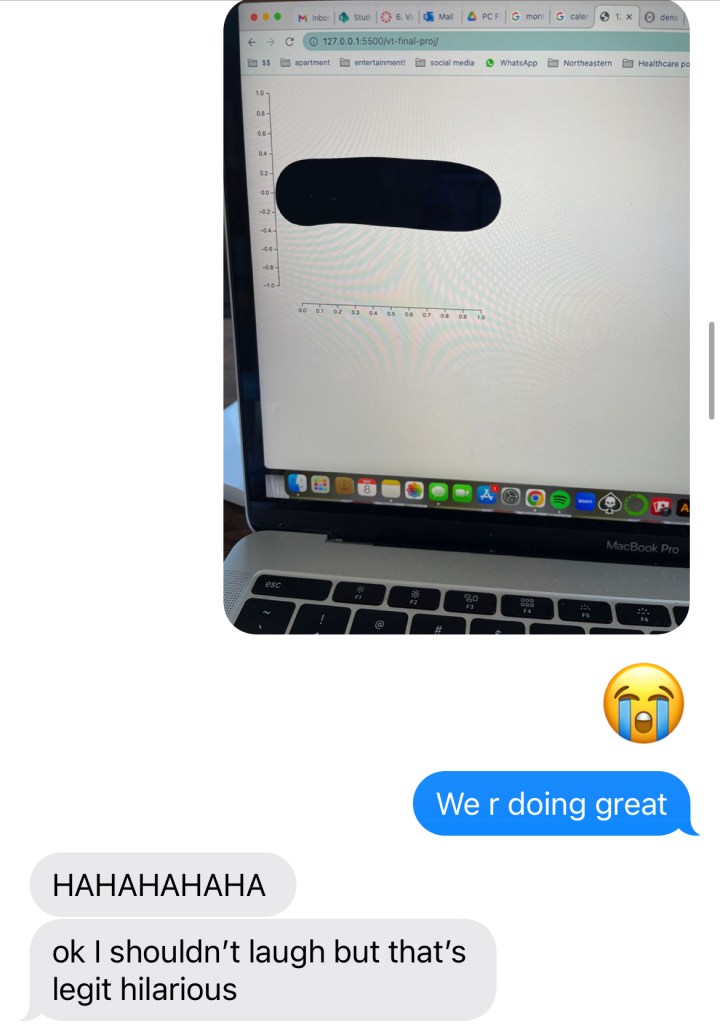 I had a lot of fun completing this project and am proud of how it all turned out. I was intimidated by d3.js at the start, and while I still am certainly wrapping my head around how it all works on a technical level, completing this project demystified some of that fear and anxiety and showed me that the customizability of d3 – while scary – is what makes it so rewarding and cool!